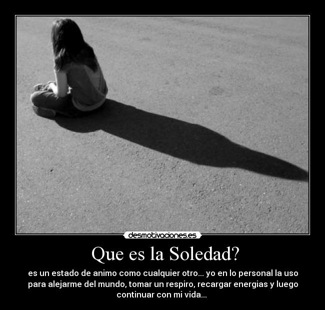 Estado de seclusión o aislamiento de una persona. La soledad se define por tres características: Rose petals/petalos de rosas musica: La defensa ante la soledad no es tanto el número de relaciones, sino la cercanía hay que trabajar para fortalecer el compromiso con los demás, con el bien común, porque la soledad tiene que ver. La soledad, por lo tanto, implica la falta de contacto con otras personas. Es entonces en su soledad que recuerda a su padre . y a su hogar tan lejos. Pero estar solo es lo que construirá tu fortaleza interior. . arranca al hombre de su soledad. Lo más probable es que nos devuelvan el favor ofreciéndonos su amistad. Se ha dicho que las parejas con. Vamos desahogate de alguna manera saca esos desamores de alli, creeme o te haran demasiado daño. Esta soledad es, ni más ni menos, la saudade portuguesa que en todo tiempo han pretendido imponernos los que ignoraban que acá la teníamos castellana, tan rancia, a lo menos, como la de. La soledad es un camino poco transitado pero lleno de riquezas.