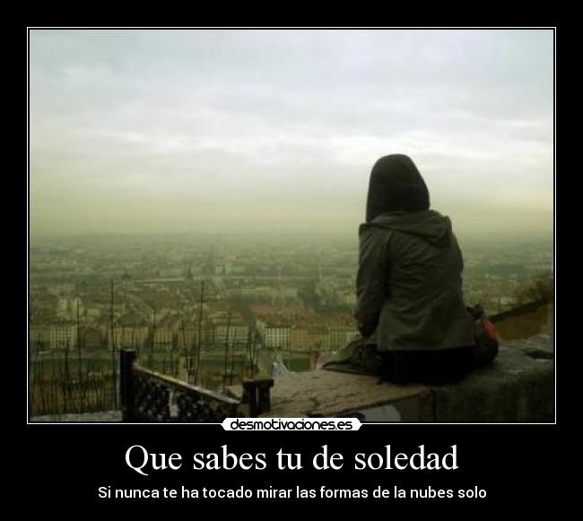 Los riesgos de la soledad en la vejez | Central ... from www.redadultomayor.org Entra, ríe, comenta y comparte sobre… que es la soledad. Estado de seclusión o aislamiento de una persona. Translations of the phrase que soledad from spanish to english and examples of the use of que soledad in a sentence with translation of que soledad in english. La soledad es un camino poco transitado pero lleno de riquezas. Vamos desahogate de alguna manera saca esos desamores de alli, creeme o te haran demasiado daño. Y además tenemos para ti todo lo mejor en chistes cortos has visto lo que pasa en: Pero estar solo es lo que construirá tu fortaleza interior. Últimos artículos, noticias y columnas de opinión con el país.